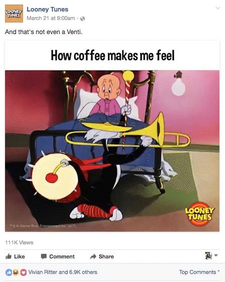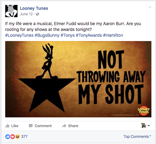 As a beloved brand and animation classic, Looney Tunes serves content directly to fans several days a week with regular Facebook posts. For over three years, I collaborated with designers to create graphics and I wrote social copy that engaged followers. Our primary strategy was to tap into nostalgia for the original Merrie Melodies shorts and reference relevant social trends in organic ways.